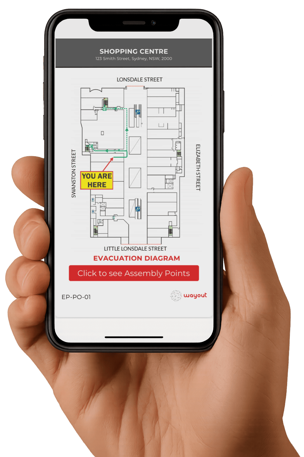 Wayout addresses the challenges of deciphering and memorising evacuation routes by delivering the optimal path to safety in an easily understandable format, illuminated right on your smartphone screen.